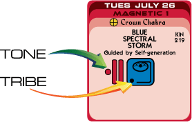 Each Galactic Gateway is composed of 2 elements: the Tone of the Day and the Tribe of the Day. The Tone and the Tribe combine to name the day. For example, Day 1 of this year is called “Blue Spectral Storm.” Spectral is the Tone, and Blue Storm is the Tribe.